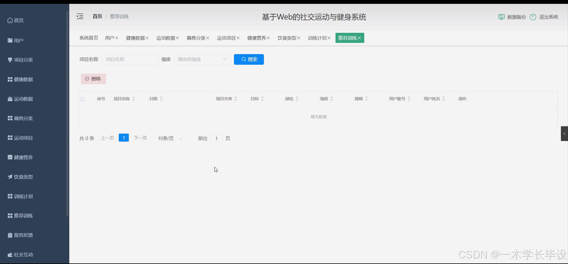 本项目的目的是开发一个功能完善的基于Web的社交运动与健身系统,旨在为用户提供个性化的训练计划、丰富的运动项目选择、健康数据管理以及社交互动等功能。通过该系统,用户可以根据自己的身体状况和健身目标,制定适合自己的训练计划,并实时跟踪自己的运动数据和健康状态。同时,系统还将提供健康营养、饮食建议等方面的知识,帮助用户形成科学的饮食习惯。此外,通过社交功能,用户可以与其他健身爱好者分享经验、互相激励,共同追求健康的生活方式。