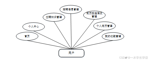 用户注册登录后可进行首页、个人中心、应聘知识管理、招聘信息管理、简历投递情况管理、个人简历管理、我的收藏管理,用户用例如图3-3所示。