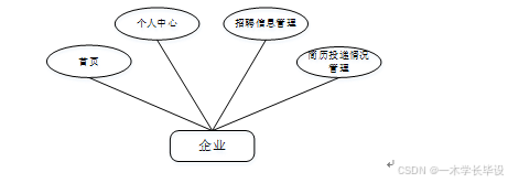企业注册登录后可进行首页、个人中心、招聘信息管理、简历投递情况管理,企业用例如图3-2所示。