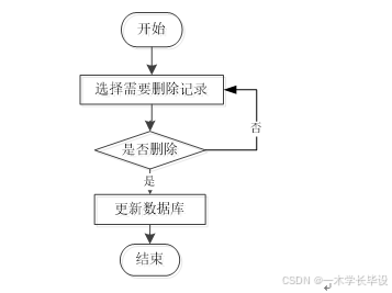 用户选择要删除的信息并单击Delete按钮。系统提示是否删除信息。如果用户想要删除信息,系统将删除信息。系统数据库删除信息。删除信息流程图如图3-6所示。