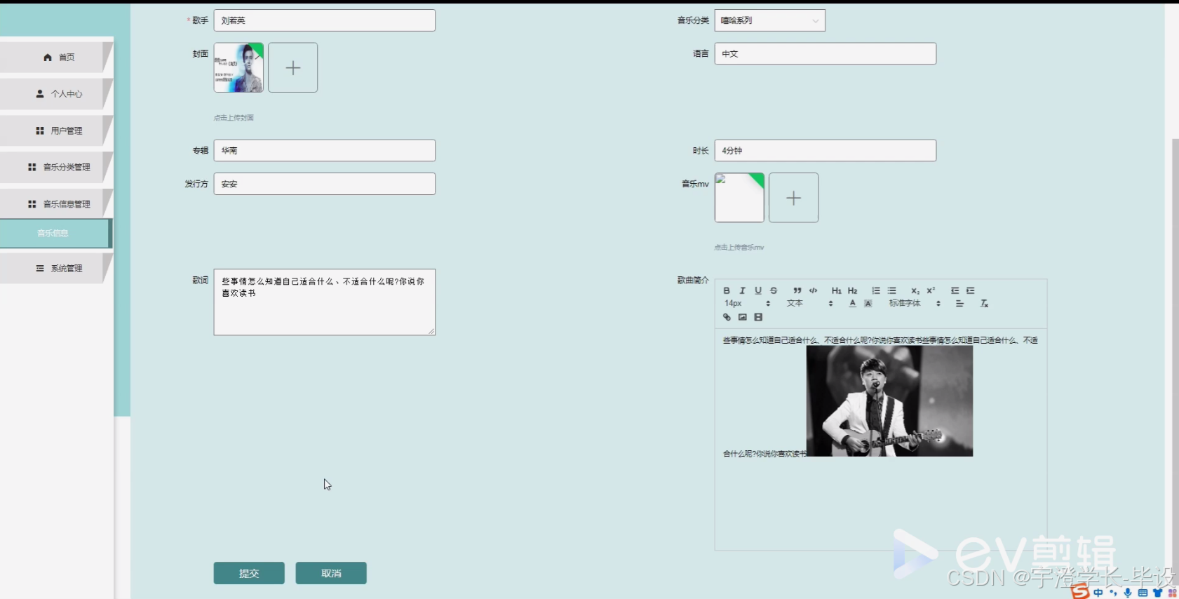 在系统的设计与实现过程中,还需考虑系统的架构设计、数据库设计、界面设计等方面。系统架构设计应确保系统的可扩展性和稳定性,数据库设计应满足数据的完整性和一致性要求,界面设计则应注重用户体验和美观性。同时,系统还应具备智能化的音乐推荐算法,能够根据用户的喜好和历史行为,为用户推荐符合个人品味的音乐。