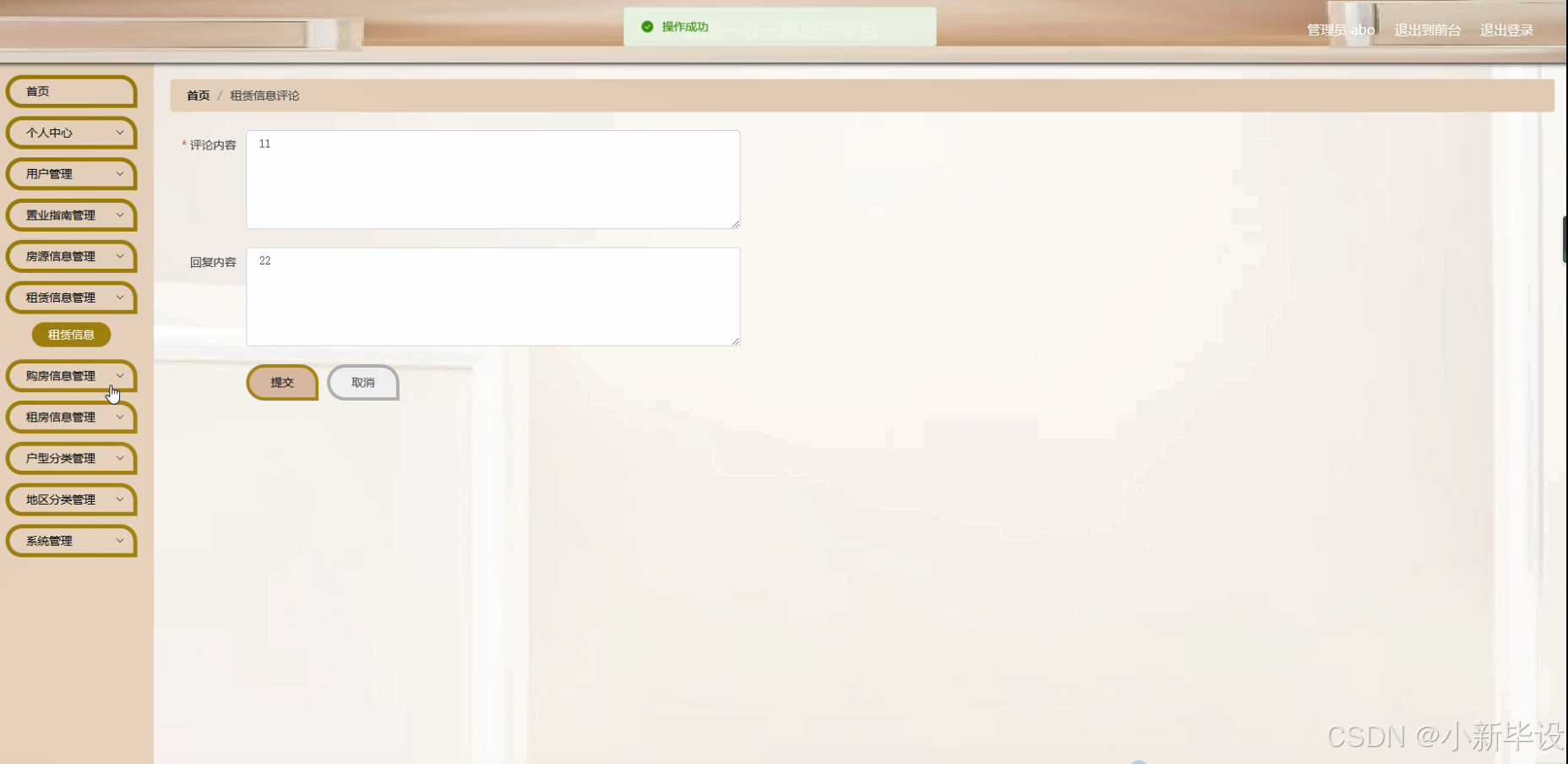 - 对入驻商家进行管理,例如对商家发布的房源信息进行审核,规范商家的服务行为。