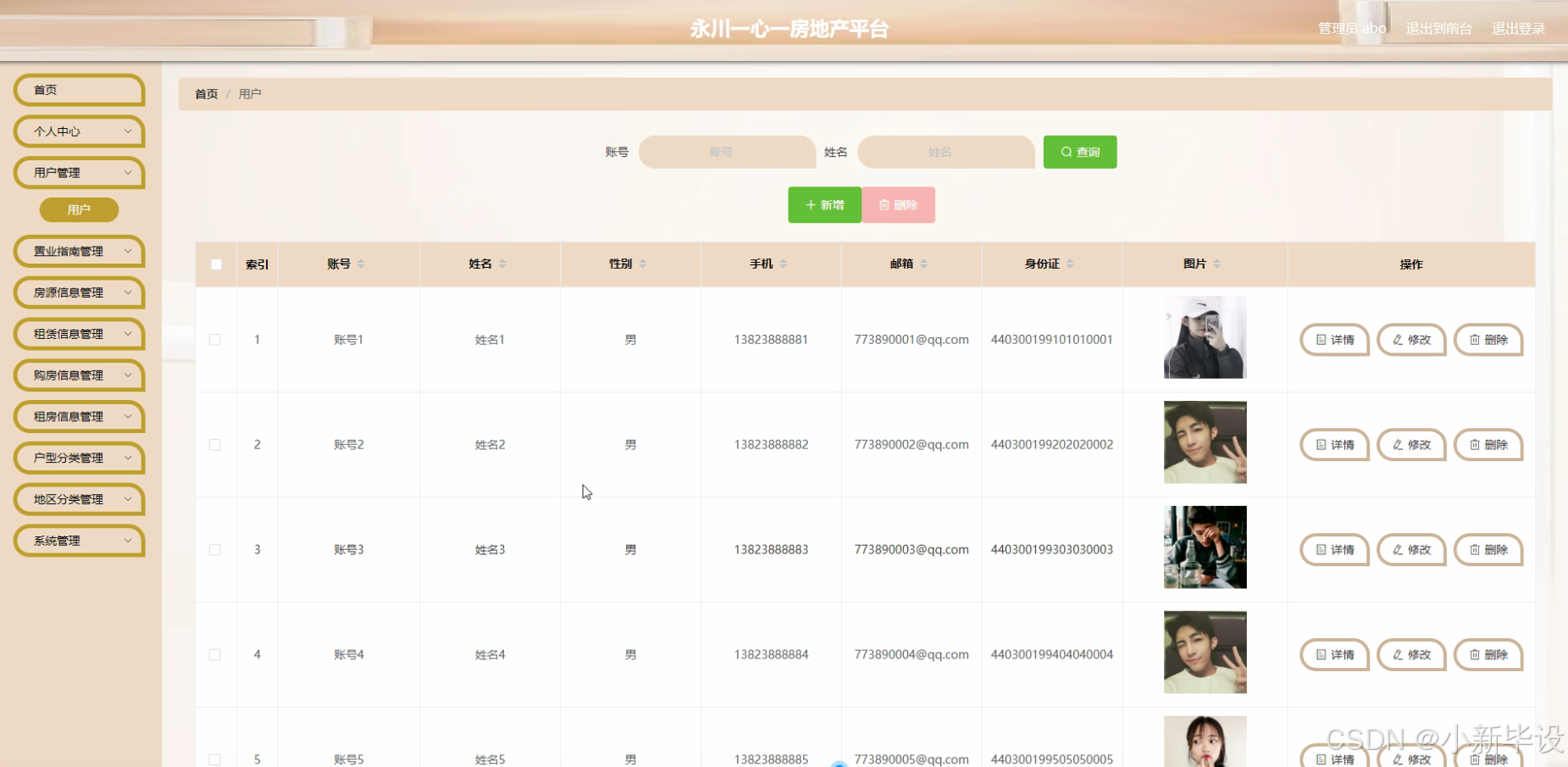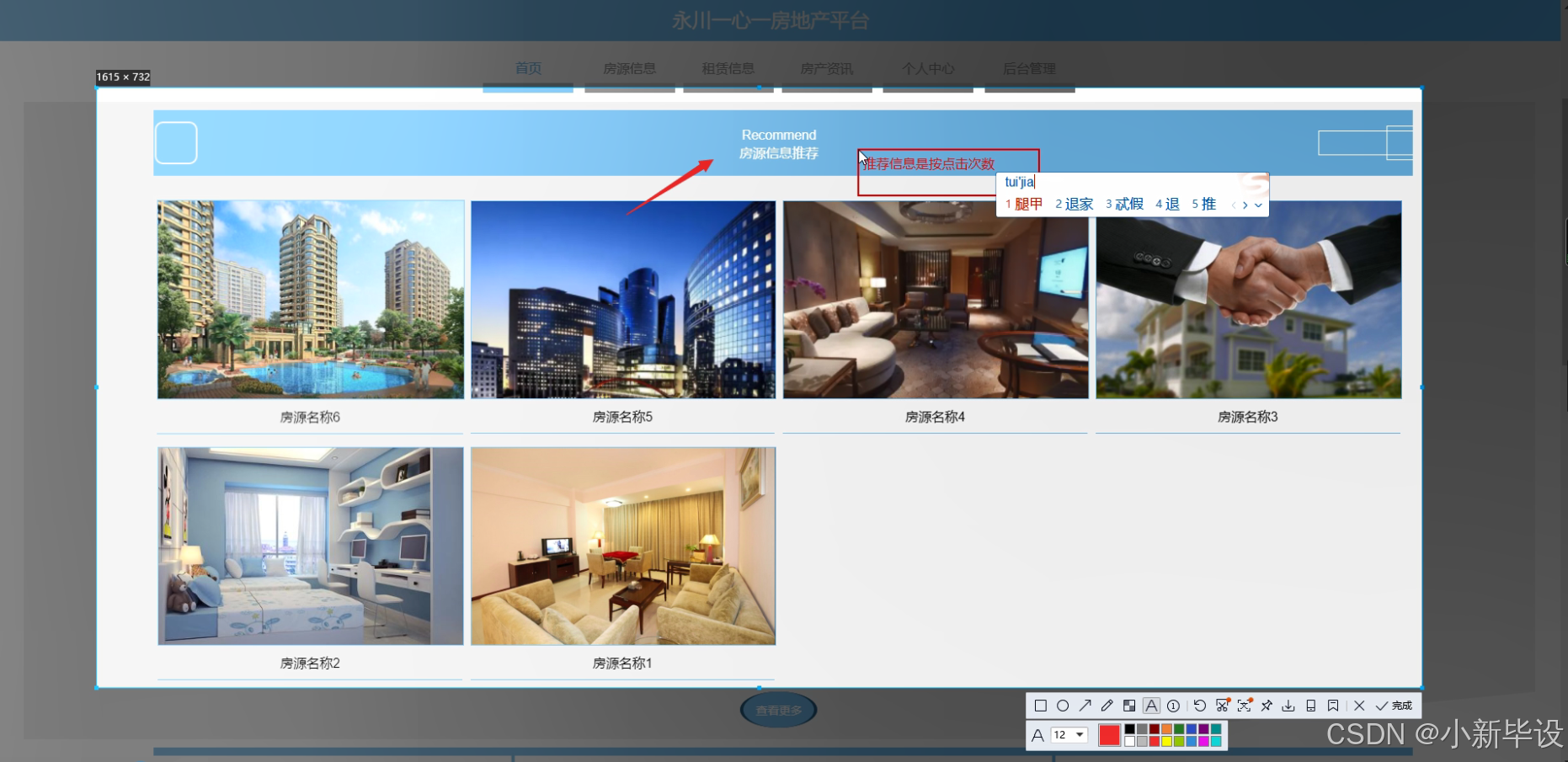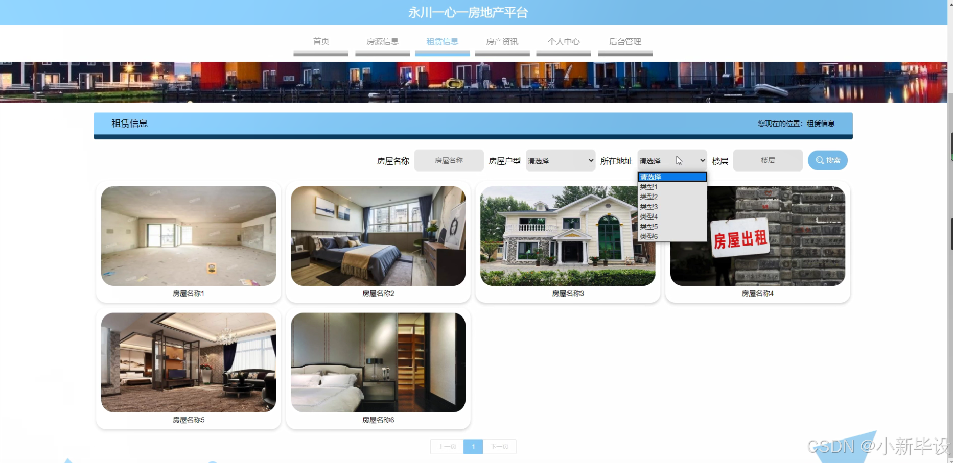 - 成功构建永川一心一房地产平台,实现用户注册登录、置业指南、房源信息查询与整合、租赁与购房信息分析、户型与地区分类、商家入驻与管理等功能。