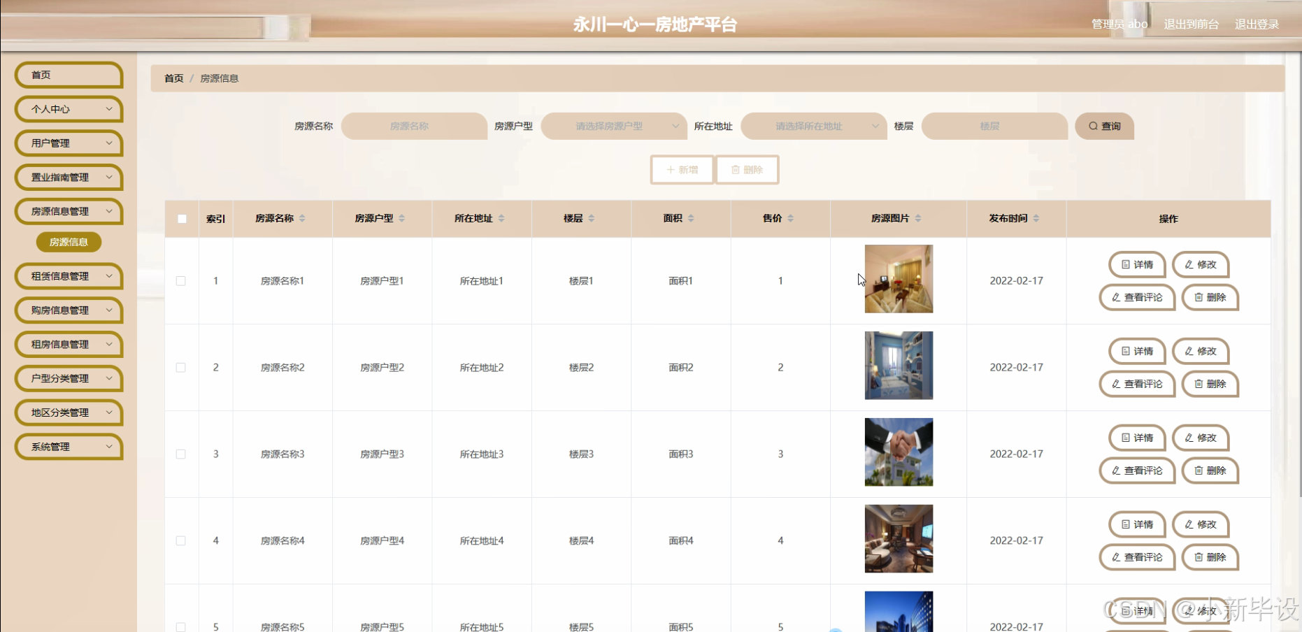 - 对房源信息的维护进行管理,例如对虚假房源信息进行筛查和处理。