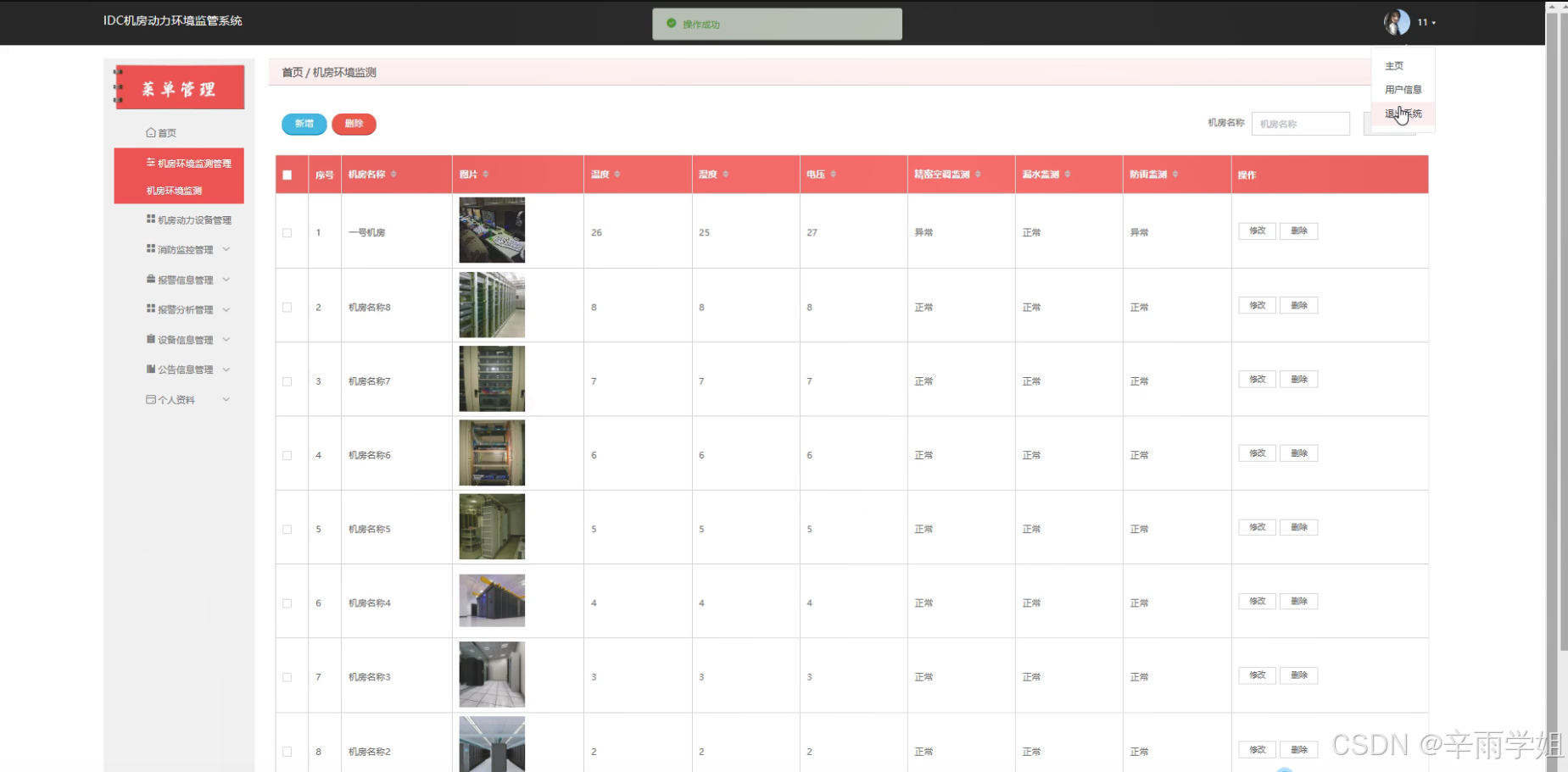- 开发出一套实用的IDC机房动力环境监管系统,具备完善的功能,包括用户管理、机房环境监测、机房动力设备监测、消防监控、报警信息处理与分析、设备信息管理、公告信息管理等功能。