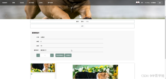 墓地:在墓地页面的输入栏中输入墓地地址、价格进行查询,可以查看到墓地详细信息,并根据需要进行添加到购物车、立即购买操作;墓地页面如图5-3所示: