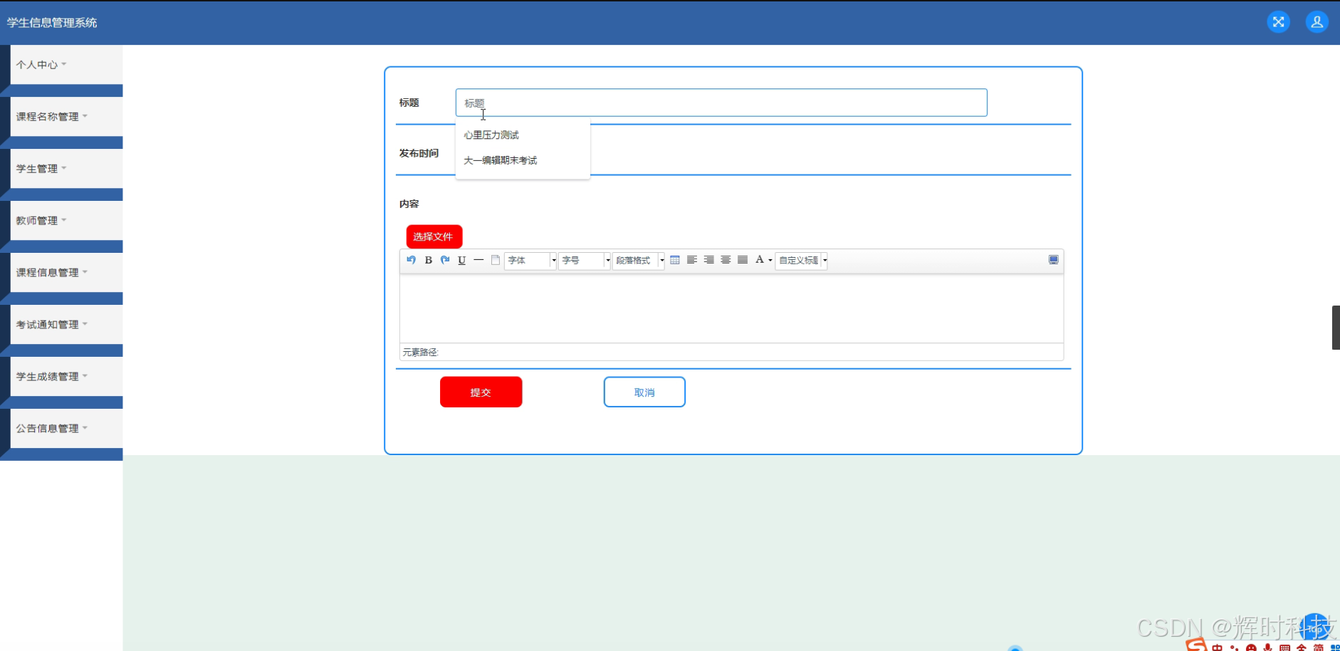 - 公告的显示和查询功能,学生和教师能够在系统首页看到最新公告,并能查询历史公告。