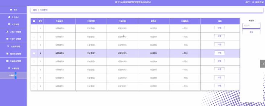 用户点击车辆管理,然后页面跳转到车辆管理界面对车辆编号、行驶里程、行驶时间、制造商、车辆路线等信息,可以查询车辆信息等操作。如图5-16所示: