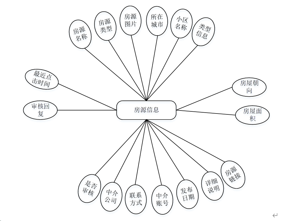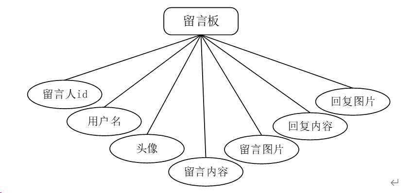 分析房屋中介信息管理系统的数据结构后,在E-R图中分析管理员登录时的模式,需要输入用户名与密码,留言板实体属性如下图所示。