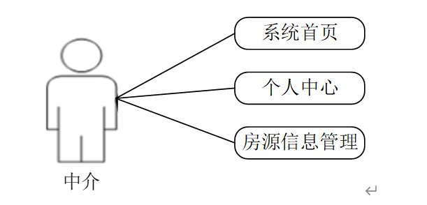 (3)、中介关键功能包含系统首页、个人中心、房源信息管理等进行管理。中介用例如下: