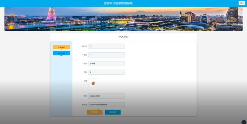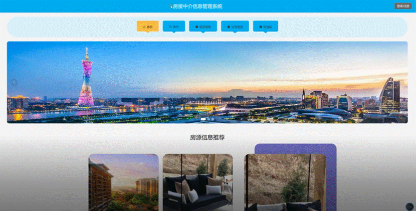 系统涵盖管理员、中介、用户三大角色功能,核心模块包括系统首页、个人中心、中介管理、用户管理、城市管理、房源类型管理、房源信息管理、留言板管理、系统管理等。管理员统筹平台管理;中介可发布房源、跟进客户;用户可浏览房源、咨询对接。系统支持房源分类检索、留言互动、信息追踪等功能,实现了房屋中介信息全流程的数字化与规范化。