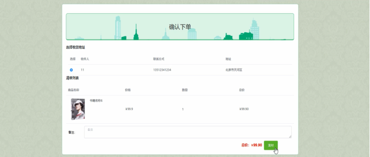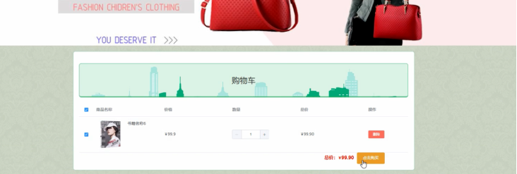 点击购物车,在购物车页面可以查看到商品名称、商品图片、价格、数量、总价等详细信息,并进行点击购买或删除操作,具体操作页面如下图所示: