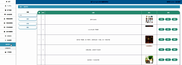 管理员点击系统管理,进入系统管理页面,可以对最新资讯和轮播图进行管理,系统管理界面如图5-14所示:
