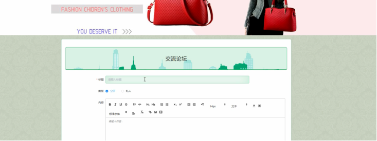 在交流论坛页面,用户可以查看其他人发布的帖子,也可以通过输入标题、选择状态、输入内容等进行在线发帖的操作,交流论坛页面如图5-4所示: