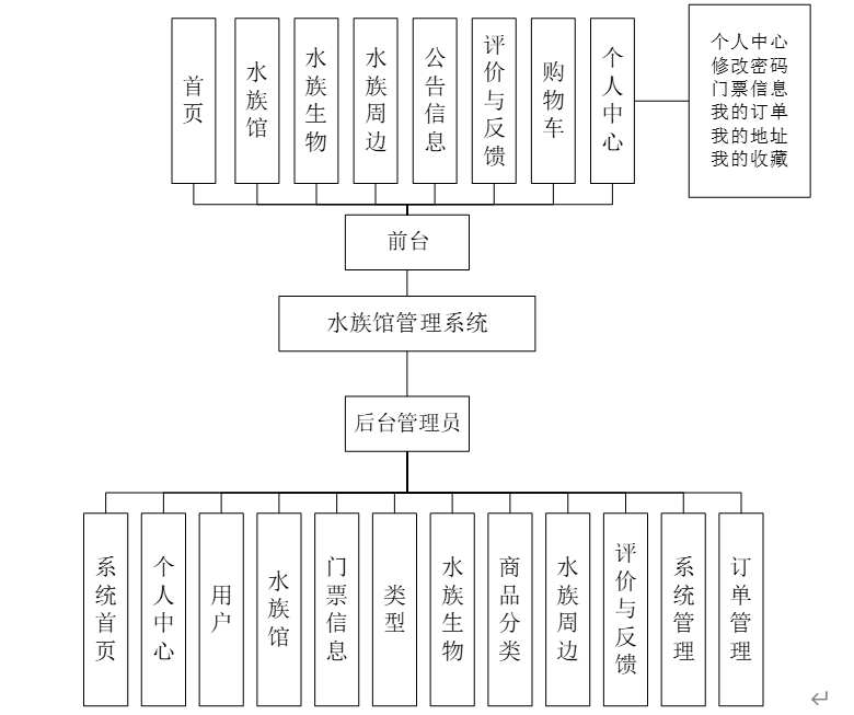 水族馆管理系统实现管理员和用户登录,查询信息,修改个人信息等。所有功能都通过与后台服务器的数据交互来完成的。具体的软件功能结构图如图4-2所示: