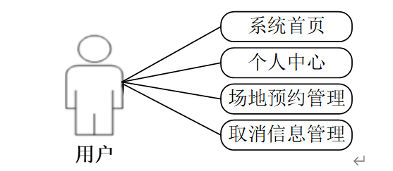 (2)、用户关键功能包括系统首页、个人中心、场地预约管理、取消信息管理等进行管理。用户用例如下: