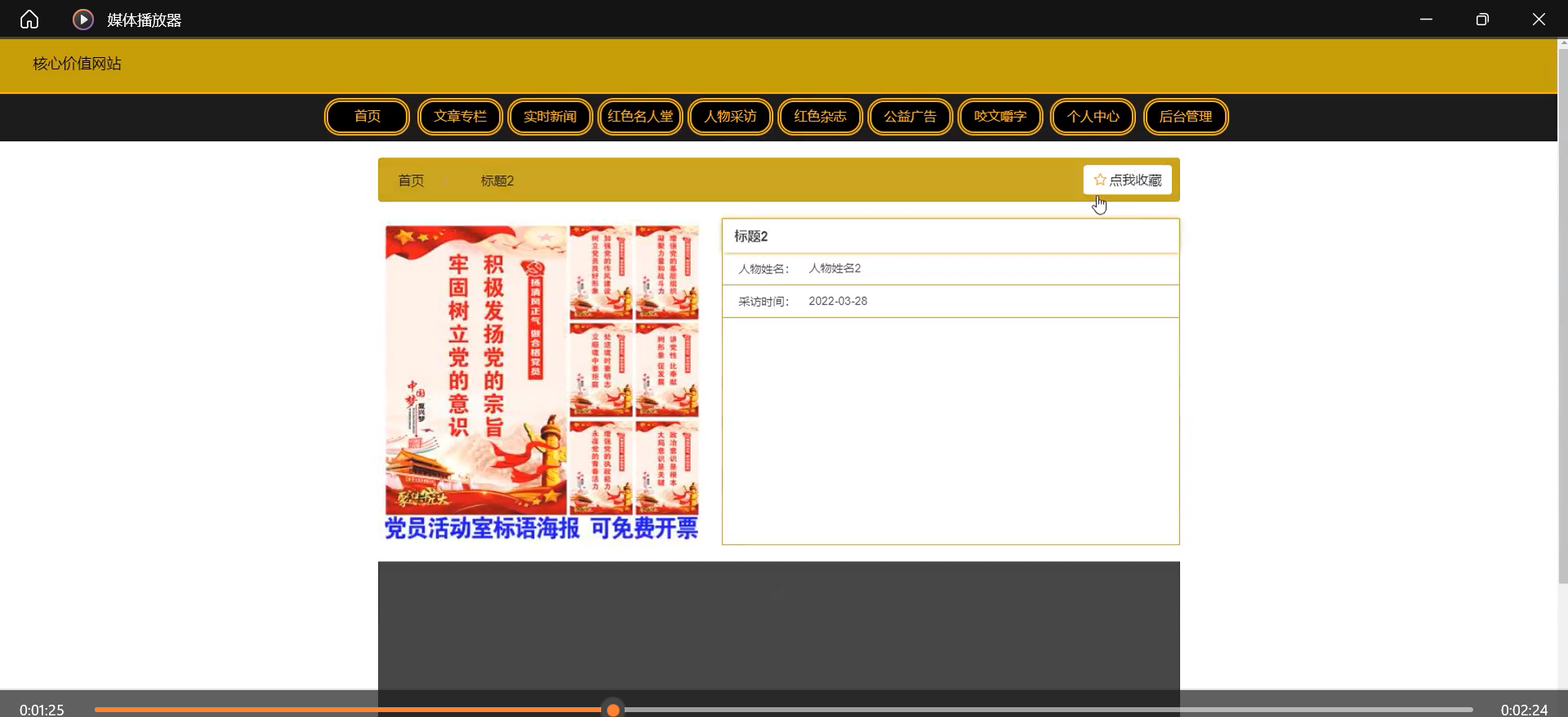 人物采访:记者后台上传4K视频,系统自动生成字幕(讯飞语音转写API),前台支持弹幕、倍速、笔记;