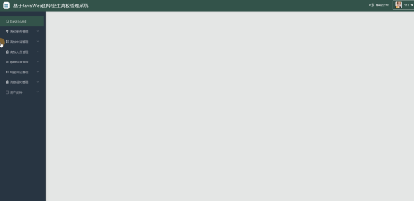 用户点击登录摁钮到毕业生离校管理系统查看Dashboard、离校事务管理、离校申请管理、离校人员管理、缴费信息管理、钥匙归还管理、消息通知管理、用户资料等内容,进行相应操作,如图5-9所示。