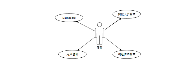 宿管的功能主要是对个人账号和密码进行更新管理,对Dashboard、离校人员管理、钥匙归还管理、用户资料进行查询详情操作。