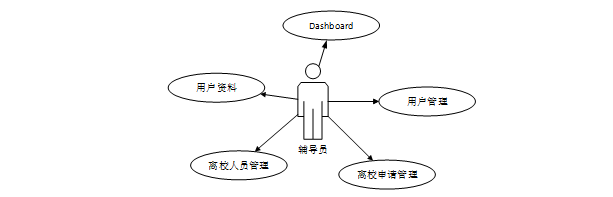 辅导员的功能主要是对个人账号和密码进行更新管理,对Dashboard、用户管理、离校申请管理、离校人员管理、用户资料进行查询详情操作。