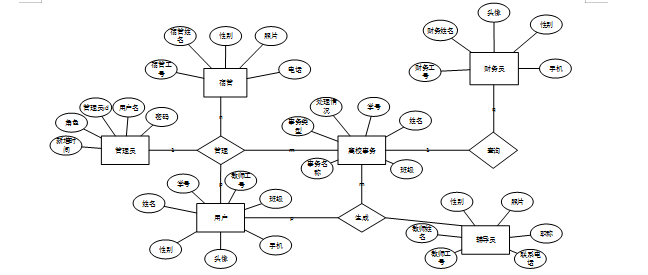 本毕业设计的E-R图描述了在系统中各个实体之间的联系,以下是对部分主要的关键实体E-R如下: