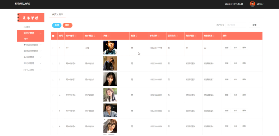 用户管理;在用户管理页面输入用户账号进行搜索、新增或删除用户管理列表,并对用户管理详细信息进行查看、修改或删除操作;如图5-8所示: