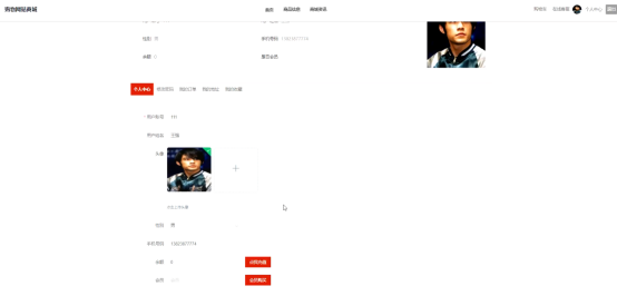 个人中心:在个人中心页面可以对个人中心、修改密码、我的订单、我的地址、我的收藏进行详细操作;如图5-5所示: