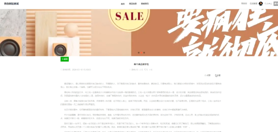 用户:在商城资讯页面输入标题进行查询商城资讯详细信息,可以才看到商城资讯详细信息,并根据需要进行评论、点赞或收藏操作;如图5-4所示: