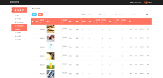 (2)管理员通过后台管理界面,实现对用户管理、商品分类管理、商品信息管理、系统管理、订单管理、个人资料等功能的操作;