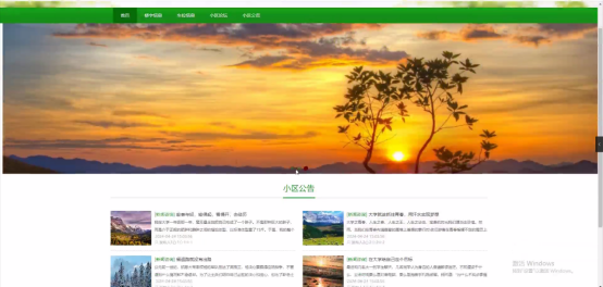 当人们打开系统的网址后,首先看到的就是首页界面。在这里,人们能够看到小区物业管理系统的导航条,通过导航条导航进入各功能展示页面进行操作。系统首页界面如图5-6所示: