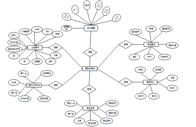 分析警务资格在线学习管理系统的数据结构后,在系统中将“公告信息、留言反馈、学习进度、案例分析评论、在线笔记、系统简介”等作为实体,它们的局部E-R如下图所示: