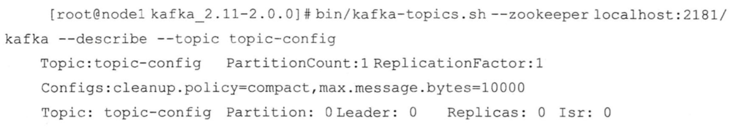 bin/kafka-configs.sh --zookeeper localhost:2181/kafka --describe --entity-type topics --entity-name topic-config