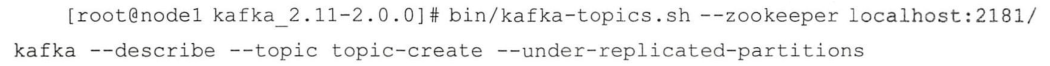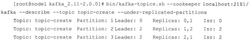 举个例子,参照主题 topic-create的环境,我们将集群中的node2节点下线,之后再通过这个参数来查看 topIc-create的信息,参考如下: