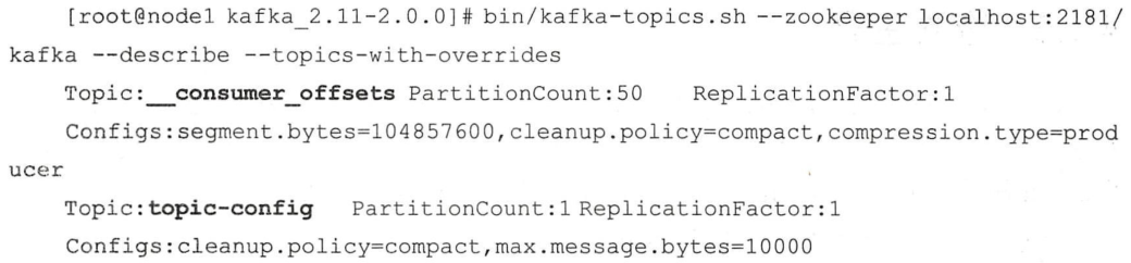 上面示例中还使用了两种方式来查看主题 topic-config中配置信息,注意比较这两者之间的差别。