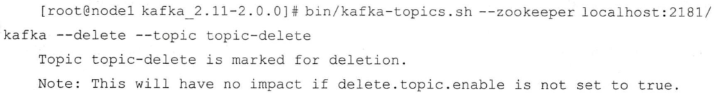 [zk: localhost:2181/kafka (CoNNECTED) 8] delete /brokers/topics/topic-delete