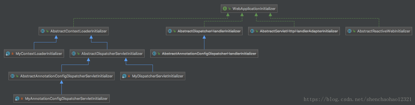 onStartup方法会将WebApplicationInitializer的实现类实例放到List中排序,依次调用onStartup()方法。Spring为我们提供了一个WebApplicationInitializer的抽象实现类AbstractAnnotationConfigDispatcherServletInitializer,通常我们只需要继承此类来完成DispatcherServlet与spring context的注册。
