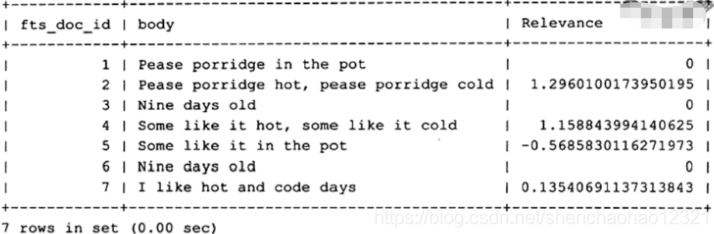 在WHRE条件中使用 MATCH函数,查询返回的结果是根据相关性(Relevance)进行降序排序的,即相关性最高的结果放在第一位。相关性的值是一个非负的浮点数字,0表示没有任何的相关性。根据MSQL官方的文档可知,其相关性的计算依据以下四个条件: