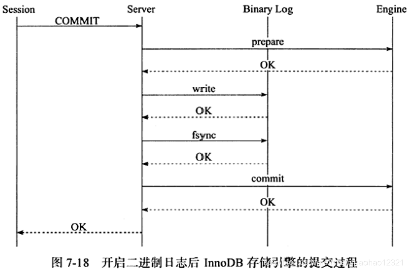 导致这个问题的原因是在开启二进制日志后,为了保证存储引擎层中的事务和二进制日志的一致性,二者之间使用了两阶段事务,其步骤如下: