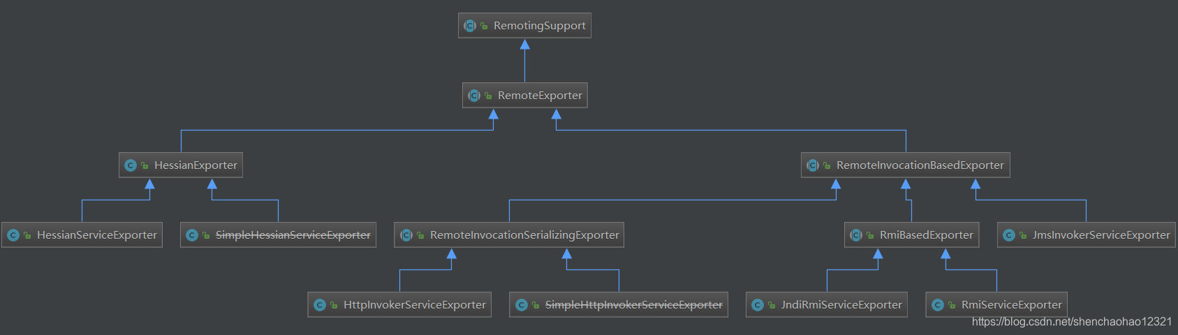 再看看远端调用的服务器端,其类继承体系如下图所示。