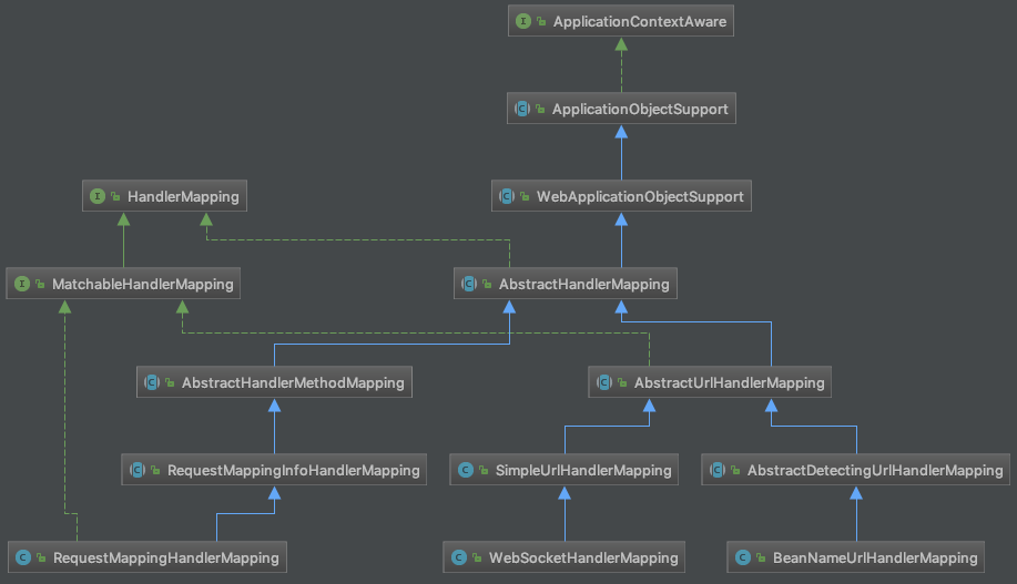 一种是实现AbstractUrlHandlerMapping的HandlerMapping,入口类为ApplicationObjectSupport的setApplicationContext()方法。