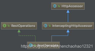 InterceptingHttpAccessor也重写了getRequestFactory()方法,目的是如果配置了拦截器,则使用InterceptingClientHttpRequestFactory,这个类重写了父类的createRequest()方法返回InterceptingClientHttpRequest,这个类持有拦截器的引用。