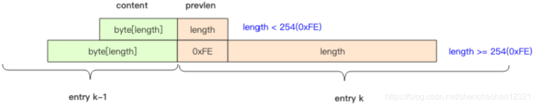 前面提到每个 entry 都会有一个 prevlen 字段存储前一个 entry 的长度。如果内容小于 254 字节,prevlen 用 1 字节存储,否则就是 5 字节。这意味着如果某个 entry 经过了修改操作从 253 字节变成了 254 字节,那么它的下一个 entry 的 prevlen 字段就要更新,从 1 个字节扩展到 5 个字节;如果这个 entry 的长度本来也是 253 字节,那么后面 entry 的 prevlen 字段还得继续更新。