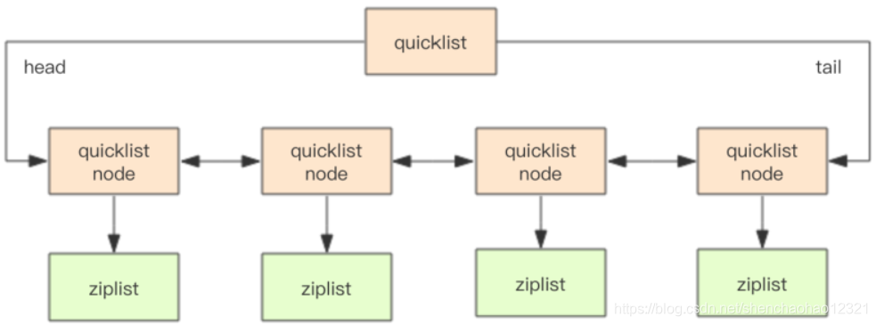 注意观察上面输出字段 encoding 的值。quicklist 是 ziplist 和 linkedlist 的混合体,它将 linkedlist 按段切分,每一段使用 ziplist 来紧凑存储,多个 ziplist 之间使用双向指针串接起来。