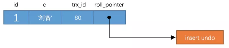 c的内容是'刘备',该版本的trx_id值为80,80小于m_ids列表中最小的事务id100,所以这个版本是符合要求的,最后返回给用户的版本就是这条列c为'刘备'的记录。