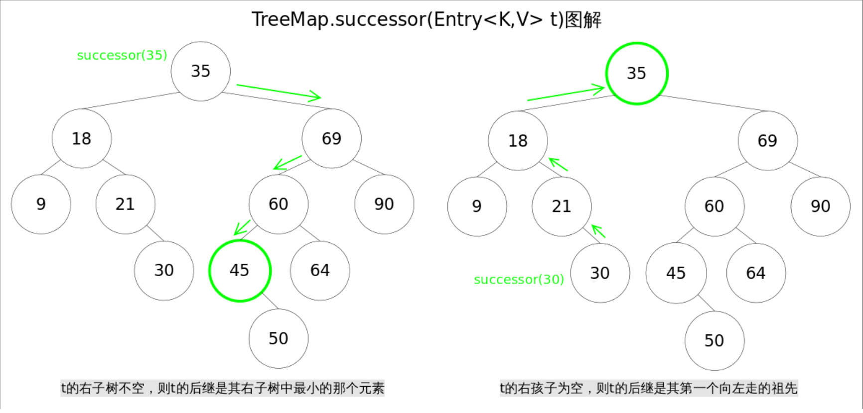 static <K,V> TreeMap.Entry<K,V> successor(Entry<K,V> t) {