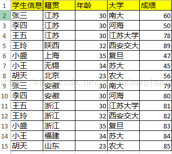 2: 测试:有两个人叫同一个“胡天”,只是来自不同的省份: