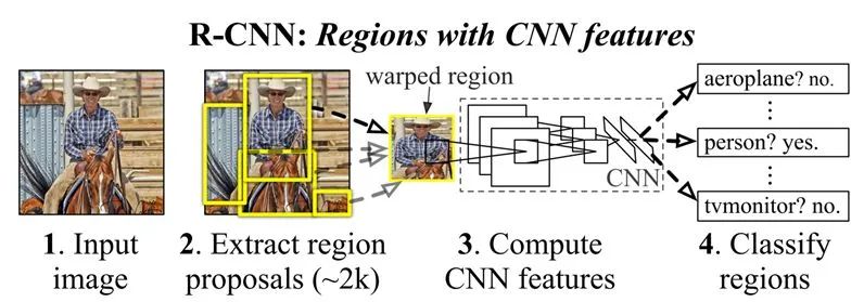 RCNN是首个将深度学习应用到目标检测领域的工作,它的算法的思想较为简单: