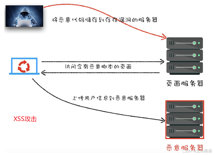 XSS 攻击主要有存储型 XSS 攻击、反射型 XSS 攻击和 DOM 的 XSS 攻击;