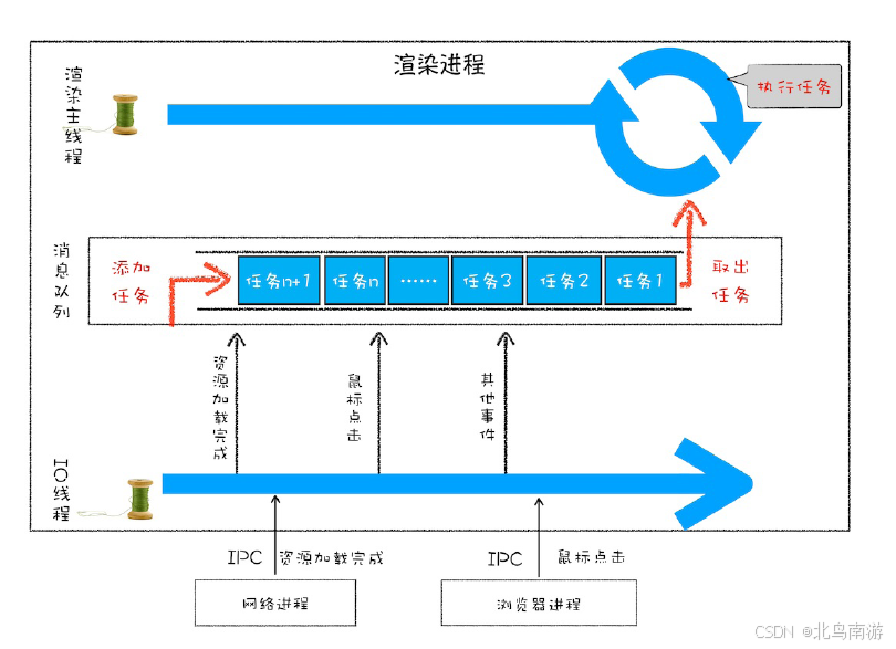 渲染进程准备好后,浏览器向渲染进程发起“提交文档”的消息,渲染进程接收到消息和网络进程建立传输数据的“管道”