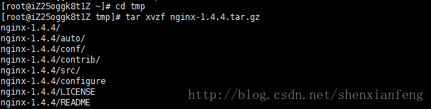 [root@iz2ze3oyrjbxg32wecre15z /]# tar xvzf nginx-1.4.4.tar.gz